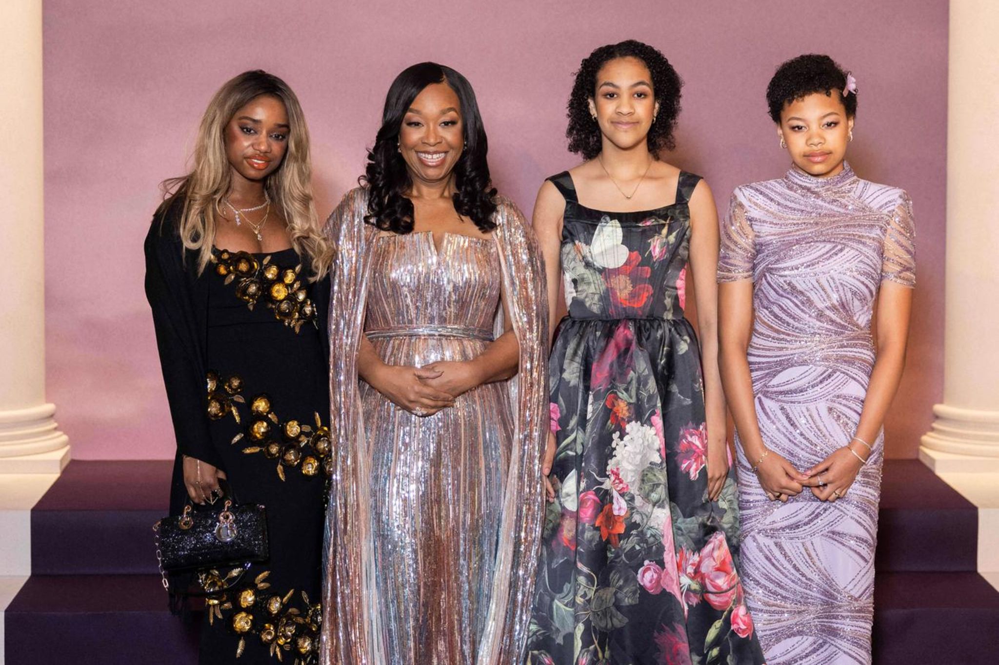 Shonda Rhimes (2.v.l.) mit ihren Töchtern Harper, Beckett und Emerson (v.l.n.r.) bei der Pariser “Bridgerton”-Premiere im Januar 2026.